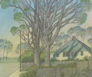 Vaughan spoke fine French and regularly read the Symbolist poetry of Arthur Rimbaud throughout his life. He made several paintings and numerous drawings based on his cycles of poems, Les Illuminations, and this is one of them. At the lower left he has written the words of which he is making a pictorial translation: