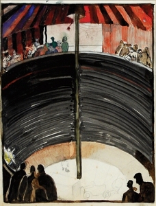 The stamp on this drawing dates it to Clark’s third year as a student at the Royal Academy Schools. Drawing was a major part of the training there with Thomas Monnington as drawing master during Clark’s time. Monnington had been a Rome Scholar in the previous decade and had a background in extremely rigorous draughtsmanship.