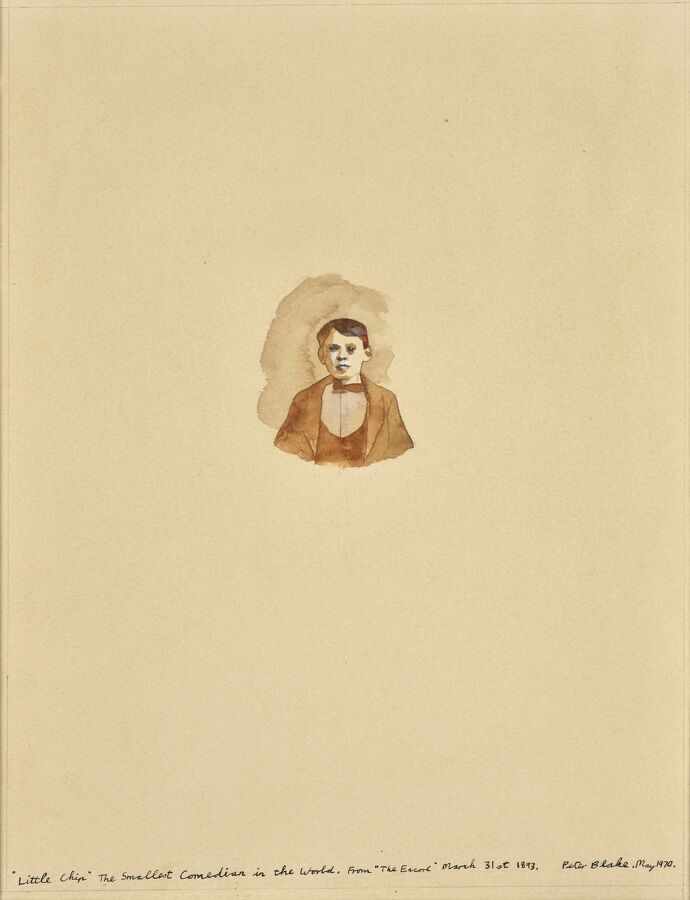 Signed, dated and inscribed to lower part of sheet: “Little Chip” the smallest comedian in the world. From “The Encore” March 31st 1893/Peter Blake/May 1970