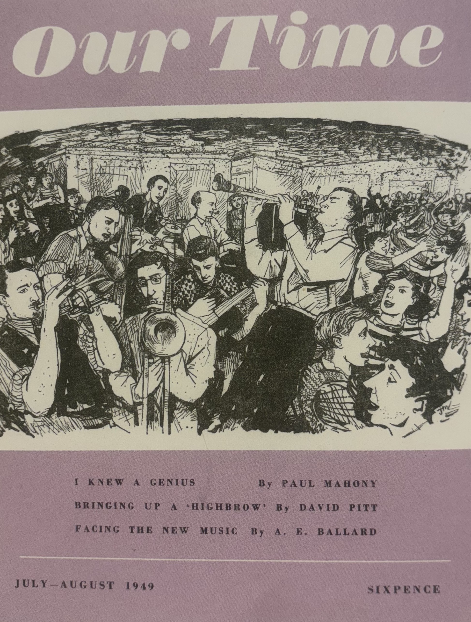 Minton was a frequenter of jazz bars in Soho and a flamboyant figure in the neighbourhood’s night life. This swift sketch, probably made on the spot, may relate to a design Minton created for the left-leaning arts magazine Our Time in the summer of 1949 (see fig.1).