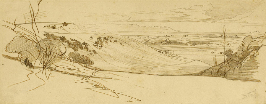 Pen and sepia ink, 14 by 36 cm (5 ½ by 14 ins)