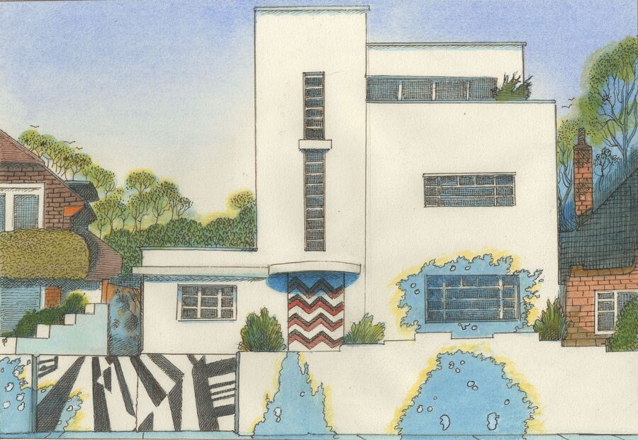 Ink and watercolour on vintage paper, 270 by 380 mm