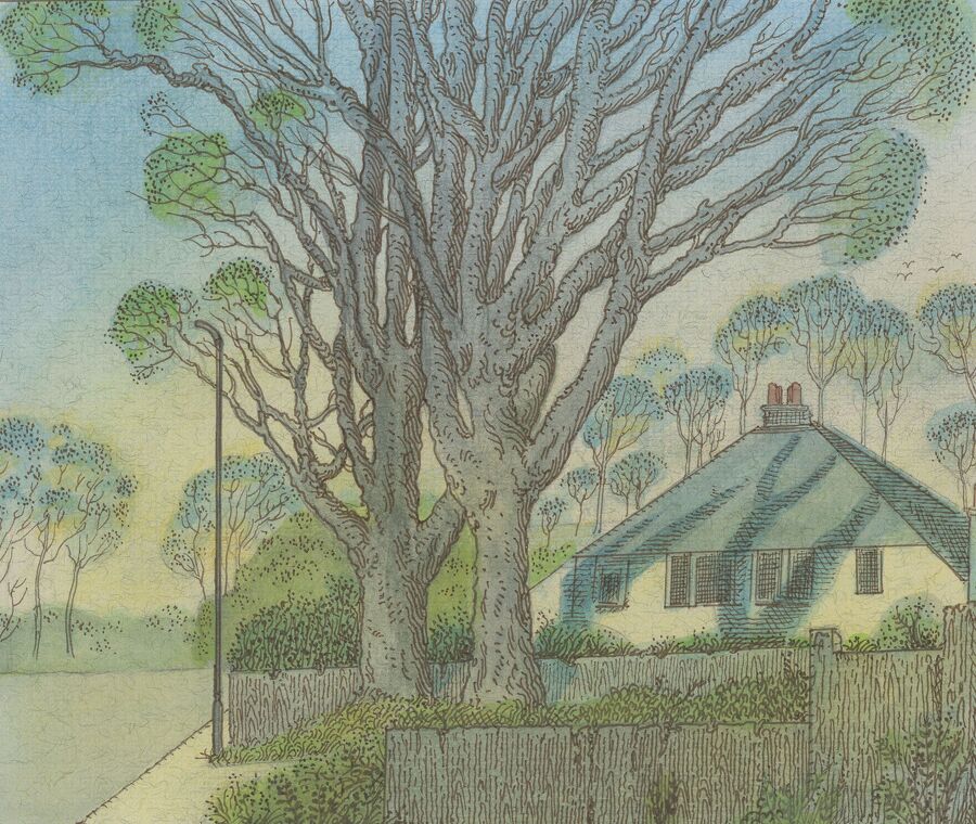Ink and watercolour on vintage paper, 300 by 254 mm
